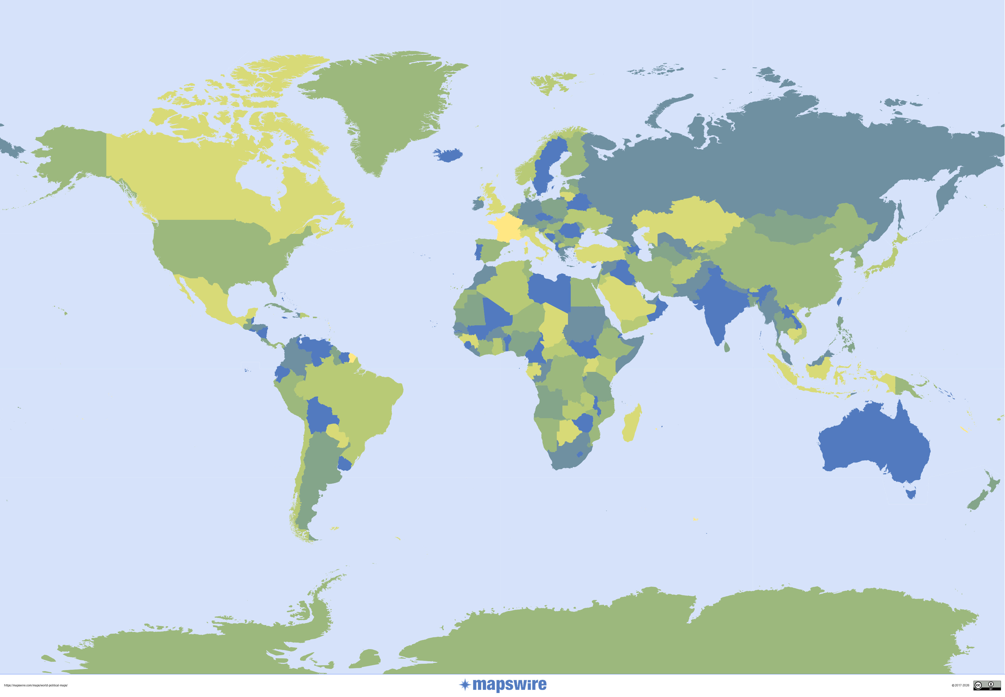 Download four maps of the World for free on this page. The maps are provided under a Creative Commons (CC-BY 4.0) license. Use the "Download" button to get the largest image available.